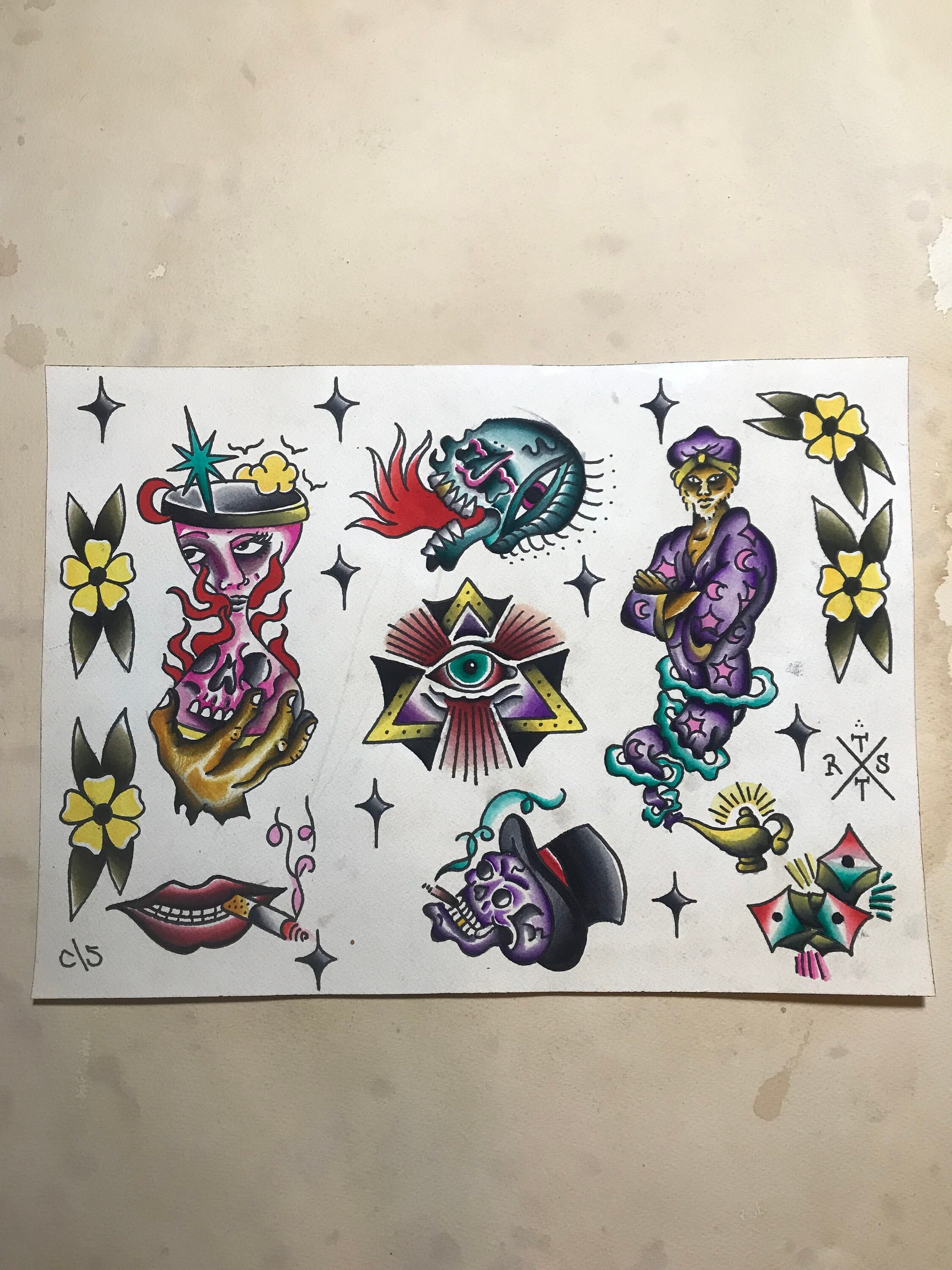 Scattered Magic Tattoo Flash Art Original Painting Etsy Osterreich